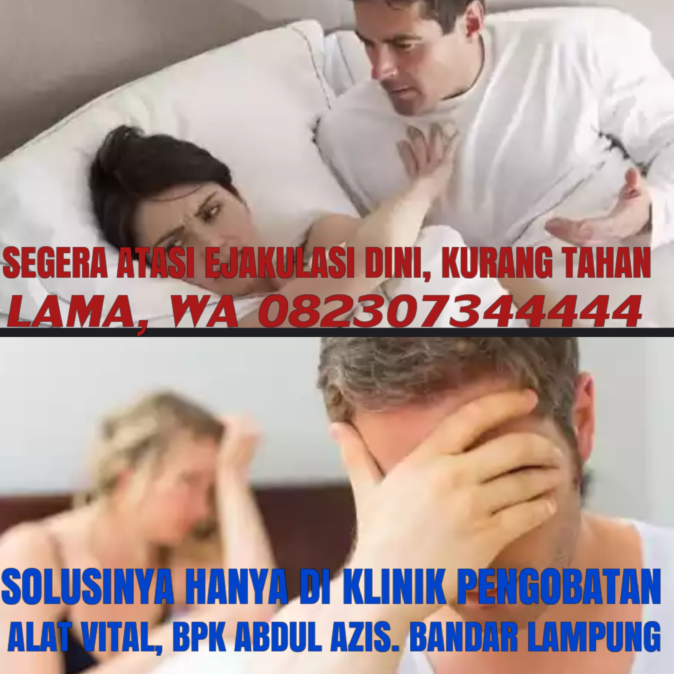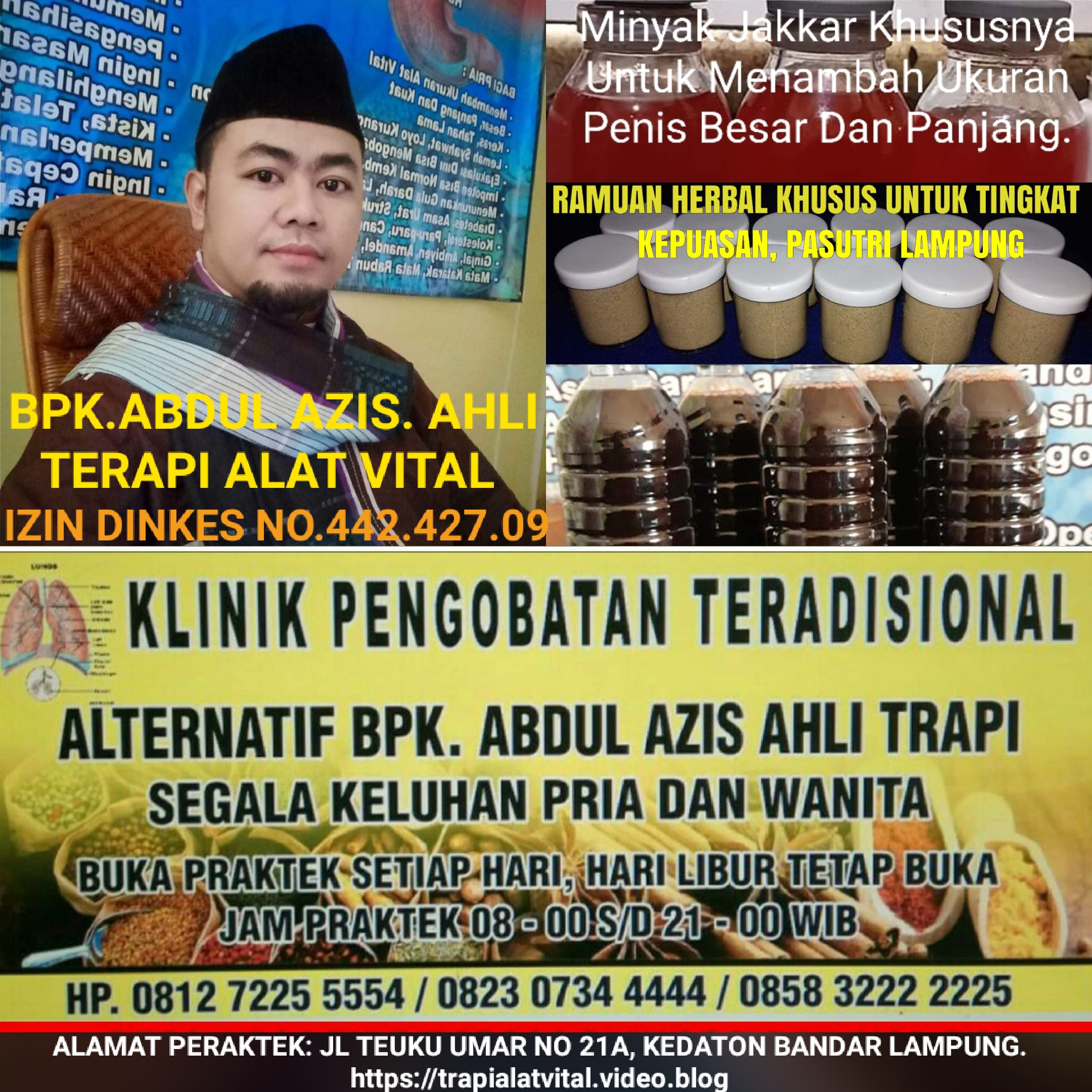 KLINIK Pengobatan Alat Vital BPK. ABDUL AZIS, akan Memberikan solusi yang tepat untuk seluruh permasalahan alat vital Mulai Dari yang Lemah Syahwat, Ejakulasi Dini, Impoten Loyo, Kurang Gairah Dll. sedang anda alami, semua pengobatan tidak menggunakan obat berbahaya yang dapat merusak kesehatan anda. Kami menawarkan pilihan untuk anda yang ingin menambah ukuran alat vital yang anda inginkan, kami tuntaskan dengan memberikan hasil yang permanen seumur hidup.
