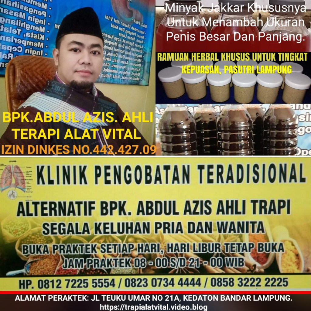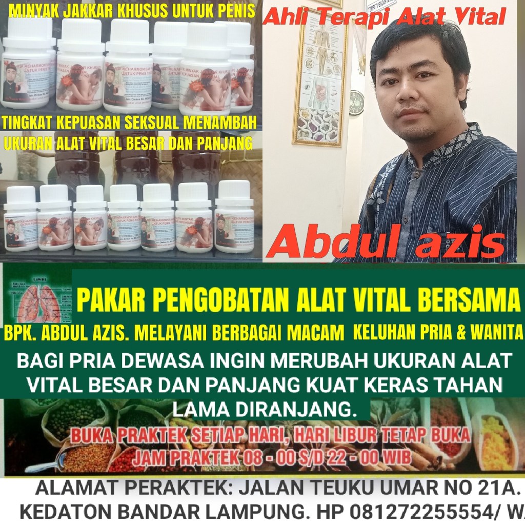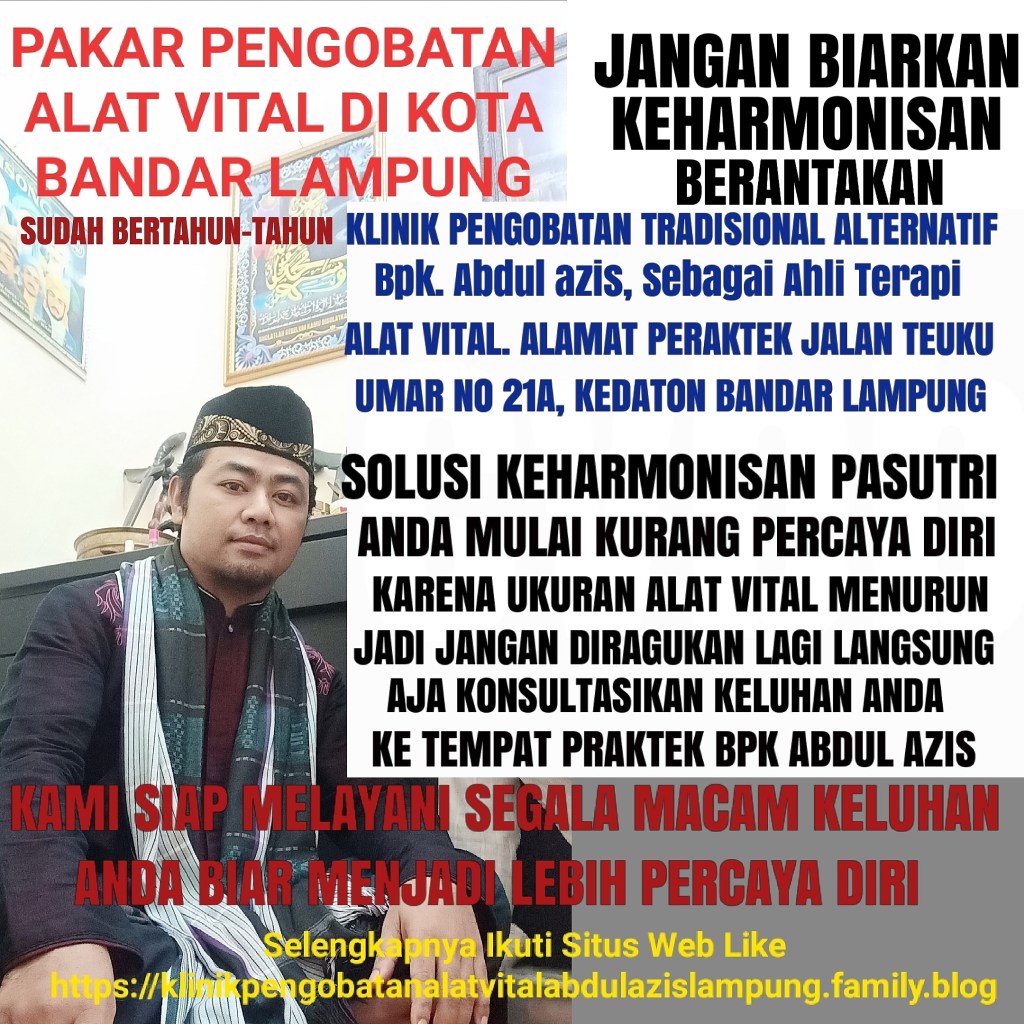 MENCARI PENGOBATAN ALAT VITAL paling ampuh di Kota Anda Bandar Lampung.? Kami solusinya Jituh ampuh, tepat serta waktu yang cepat untuk menyembuhkan berbagai keluhan alat vital yang anda derita. Pilihl Salah satu keahlian Nya sebab Pengobatan TRADISIONAL kami memberikan solusi mengatasi gangguan ALAT VITAL paling Sepektakuler Hanya Di Pengobatan Bpk. Abdul Azis, dan sudah terbukti dari berbagai banyaknya pasien dengan berbeda beda keluhan. Hampir di seluruh daerah kota besar di indonesia praktek pengobatan Bpk. Abdul azis, sudah banyak Terbukti Di Indonesia Maupun Di Luar Negeri Pun Pernah Tampil luas sebab itu kami sudah sangat terpercaya untuk melayani seluruh masyarakat di indonesia.