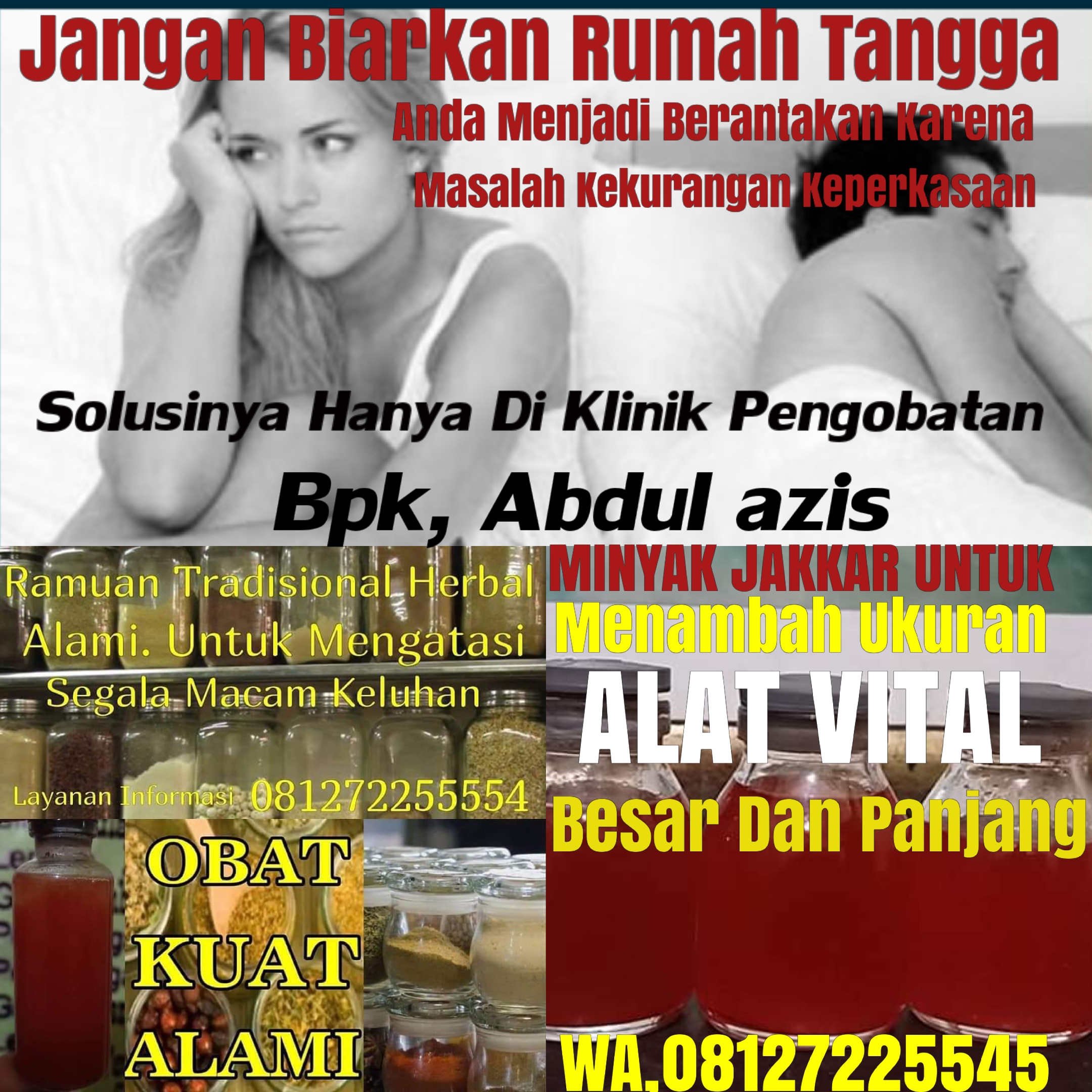 Klinik Pengobatan Alat Vital Dikampung Bersama BPK Abdul azis, Udah Gak Asing Lagi Di Indonesia Dan Di Luar Negeri Pun Udah Pernah Tampil Tentang Terapi Alat Vital. Dan Untuk Menambah Ukuran Kejantanan Bisa Disesuikan Besar Lingkaran 15cm 17cm 18cm 20cm. Panjang Diameter 2,3cm 4cm 5cm 6cm. Bisa Menambah Durasi Ereksi kuat keras tahan lama. Dan khasiatnya saat dapat dikategorikan menjadi 40 kerjasama seluruh pihak yang terkait.Kerjasama macam jamu jaklcar, obat herbal Tradisional, Hasil tanaman Bpk ABDUL AZIS.