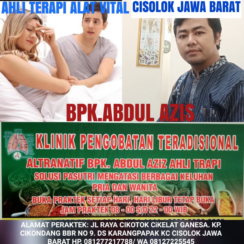 KLINIK PENGOBATAN ALAT VITAL BPK ABDUL AZIS, TERBAIK DAN TERBESAR DAN TERPERCAYA DARI TANAH PASUNDAN KINI KEAHLIANNYA SUDAH TERKENAL Di seluruh Indonesia Dan Kini Membuka Peraktek Di Setiap Kota Mulai Kota Media Dan Masuk Kabupaten, Sabang Sampai Merauke. Terapi Sepecialis Keperkasaan Pria Ingin Lebih Percaya Diri.