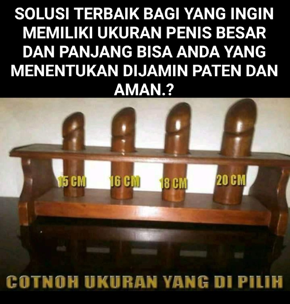 Panjang 15cm, Besar Diameter 3 cm Panjang 16cm, Besar Diameter 4 cm Panjang 18cm, Besar Diameter 5 cm Panjang 20cm, Besar Diameter 6 cm Bisa Menjadikan besar dan Panjang Bisa Keras dan Tahan lama Ingat! No.suntik slikon dan Bahan berbahaya Selain itu kami menawarkan jalan keluar untuk anda yang memiliki masalah kurang percaya diri sehingga tidak bisa memberikan yang terbaik dalam berhubungan bersama pasangan anda. Semua akan diatasi melalui pengobatan alat vital dengan menggunakan teknik pengobatan yang sangat Mujarab Ramuan Herbal, Dan Minyak Jakkar 100% aman tanpa menimbulkan efek samping.