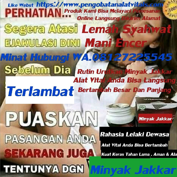 Ini bukan omong kosong, ini memang adalah hasil ramuan ekstrak alami. Beberapa bahan intisarinya memang sudah disediakan alam untuk kebaikan kita, jadi kita harus pakai untuk kebaikan bersama, bukan disalahgunakan kepada pacar/pasangan yang belum sah menikah Jika kamu bangun tidur tidak pernah ngaceng, maka SANGAT DIANJURKAN untuk Informasi Langsung kepada Pakarnya Atau Langsung Pesan Minyak Jakkar Siap Diorder, Cara Metode Minyak Jakkar Di Urutkan Selama 5/10 menit untuk hasilnya langsung kelihatan Besar Dan Panjang, ekstrak alami ini yang bisa dipesan disitus resmi Minyak Jakkar Ini adalah peringatan pertama!.
